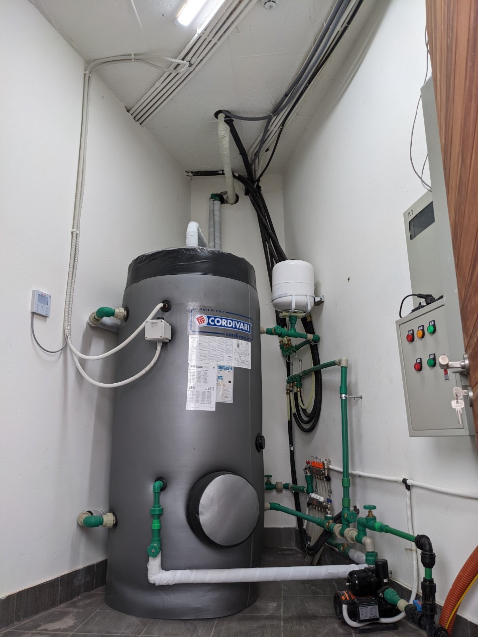 Máy bơm nhiệt nước nóng trung tâm hay còn gọi tắt là heatpump. Đây là hệ thống nước nóng trung tâm dành cho các gia đình lớn nhỏ, công trình thương mại như khách sạn, resort, spa, sử dụng máy nén khí gas để tạo ra nhiệt lượng làm nóng nước, độ an toàn cao gấp nhiều lần các bình nước nóng thông dụng. Heatpump có khả năng làm nóng nước nhanh nhằm đáp ứng lượng nước nóng lên tới hàng trăm lít, điều mà các bình nướng nóng thanh đốt rất khó thực hiện. Hơn nữa điện năng sử dụng có thể thấp hơn đến 80% so với sử dụng bình nóng lạnh thông thường, nhờ vào hiệu suất COP tuyệt vời, đạt chứng chỉ Class A++ của máy bơm nhiệt Immergas đến từ Italia. Heatpump có nhiều ưu điểm hơn bình nóng lạnh truyền thống. Khách hàng không cần lắp đặt bình nước nóng cho mỗi phòng mà có thể hẹn giờ và bảo quản được nước nóng tới 3 ngày khi máy không hoạt động, nhờ vào bình bảo ôn Cordivari hiệu suất cao. Vì lý do này, càng nhiều hơn các hộ gia đình và các công trình thương mại sử dụng heatpump nhiều hơn và thay thế dần các dòng sản phẩm bình nóng lạnh truyền thống trên thị trường