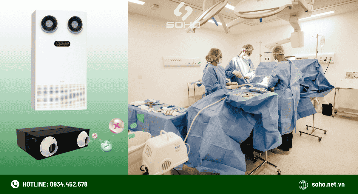 Loại máy phù hợp: Máy cấp khí tươi đặt sàn hoặc hệ thống cấp khí tươi trung tâm 2 chiều thu hồi nhiệt là giải pháp tối ưu. Lưu lượng khí tươi cần đạt 50m3/h/người để duy trì môi trường vô trùng.