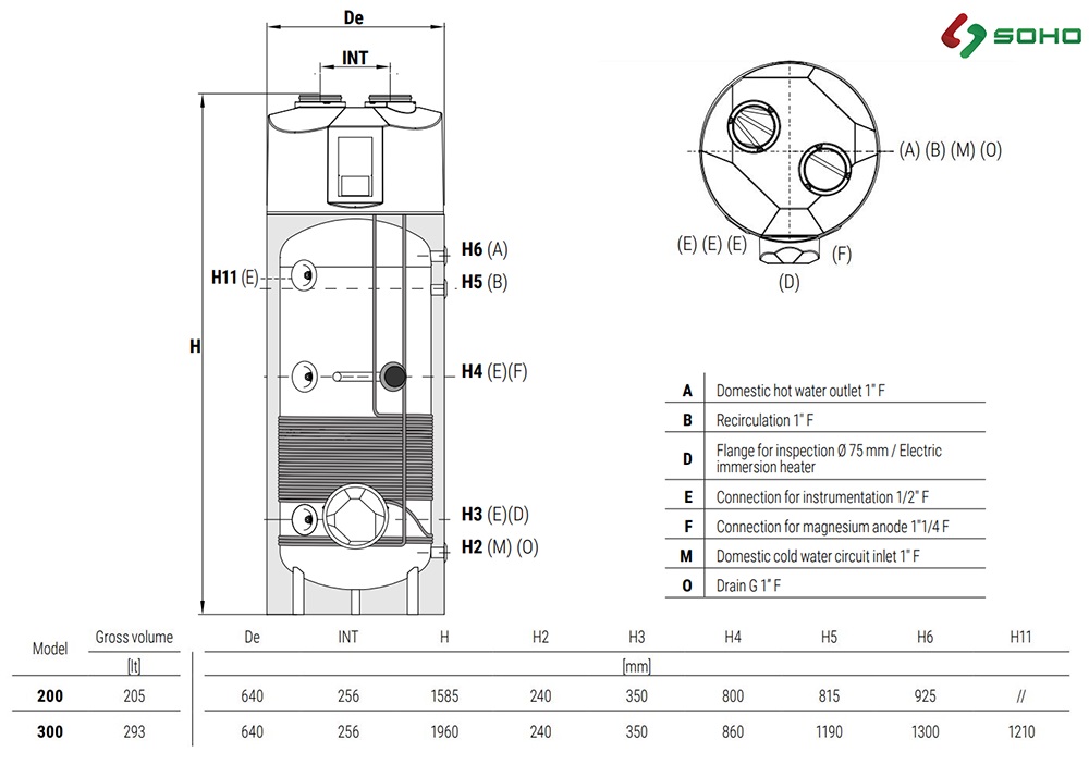 Thể tích bình: 200L ( thể tích hữu dụng 205L)