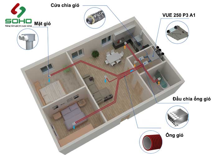 Một thiết bị cải thiện chất lượng không khí trong nhà đến từ châu Âu. Đã có mặt tại hơn 110 quốc gia trên khắp thế giới. Nay đã có mặt tại Việt Nam bởi SOHO- Đơn vị phân phối và lắp đặt các sản phẩm thông gió- hút mùi- sưởi ấm,... hàng đầu Việt Nam. Máy cấp gió tươi âm trần hồi nhiệt Vents VUE 250 P3 A1- Giải pháp thông gió, hút mùi, cấp gió tươi, lọc không khí cho những không gian lớn hoặc nhiều phòng cùng 1 lúc.