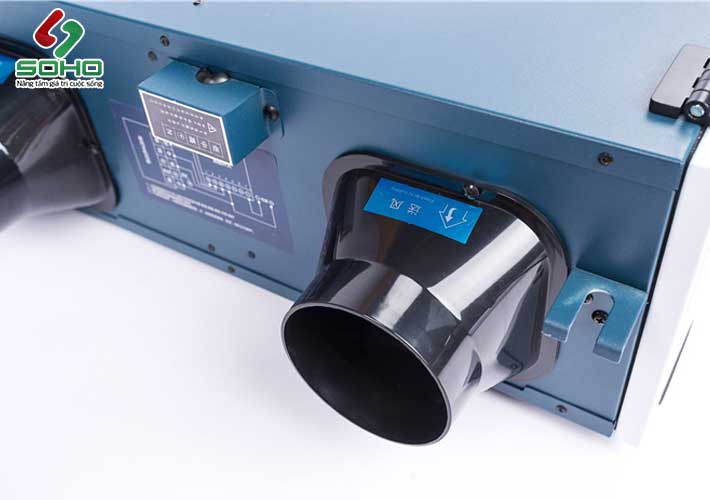 Với lưu lượng gió 350m3/h, Ree-D35A-A được lắp đặt cho phòng có diện tích 100m2. Một máy được chia ra làm nhiều cửa gió khác nhau, hút mùi-cấp khí cho nhiều khu vực trong cùng 1 thời điểm. Với mỗi một khu vực sẽ có 1 điểm cấp và 1 điểm hút. Hai điểm này không nên để qua gần nhau vì khí vừa cấp vào sẽ bị hút ra luôn, không hiệu quả.