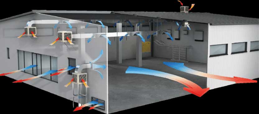 Ngoài việc cung cấp khí và độ ẩm cho các không gian kín, chúng cũng được dùng cho các không gian có thiết kế mở như xưởng sản xuất, trung tâm thương mại, nhà để xe, nhà hàng, ......