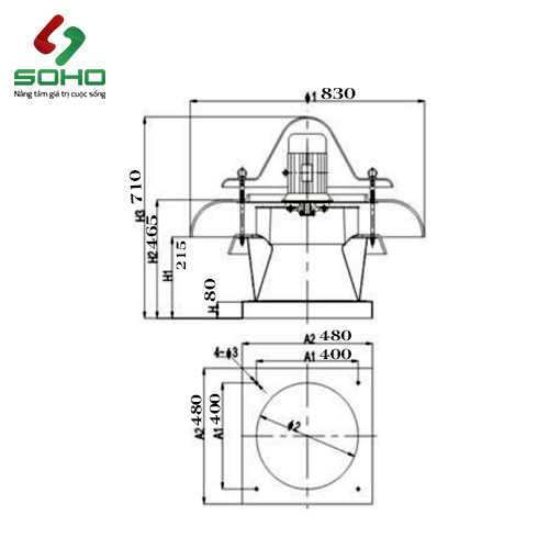 •  Lưu lượng gió: 1332-2634 m3/h