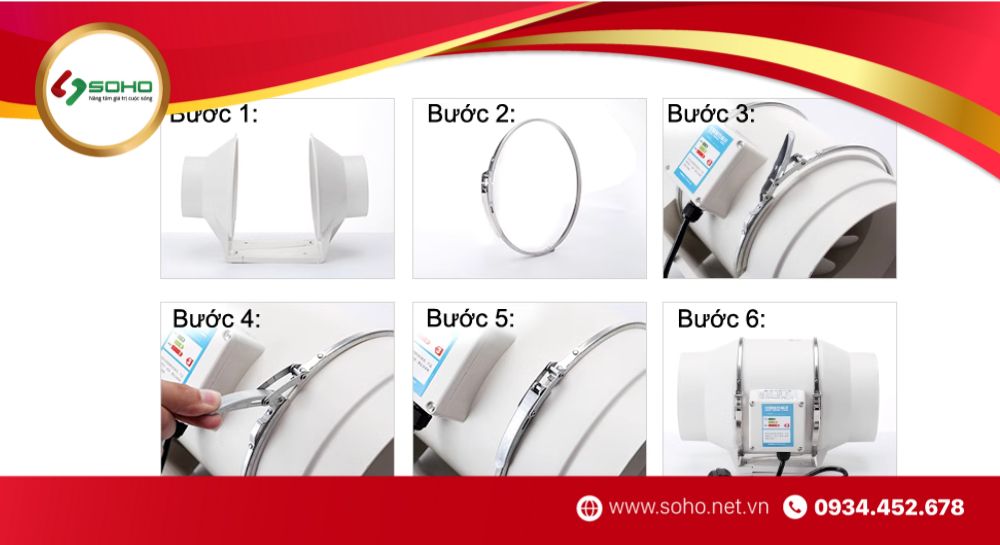 Các bước tháo/lắp quạt hút nối ống gió