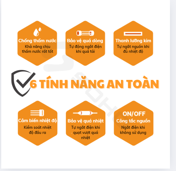 Huezzennte Nova không chỉ mang đến khả năng sưởi ấm hiệu quả mà còn được trang bị hệ thống bảo vệ an toàn 6 cấp độ, giúp người dùng yên tâm sử dụng ngay cả trong môi trường ẩm ướt như phòng tắm.