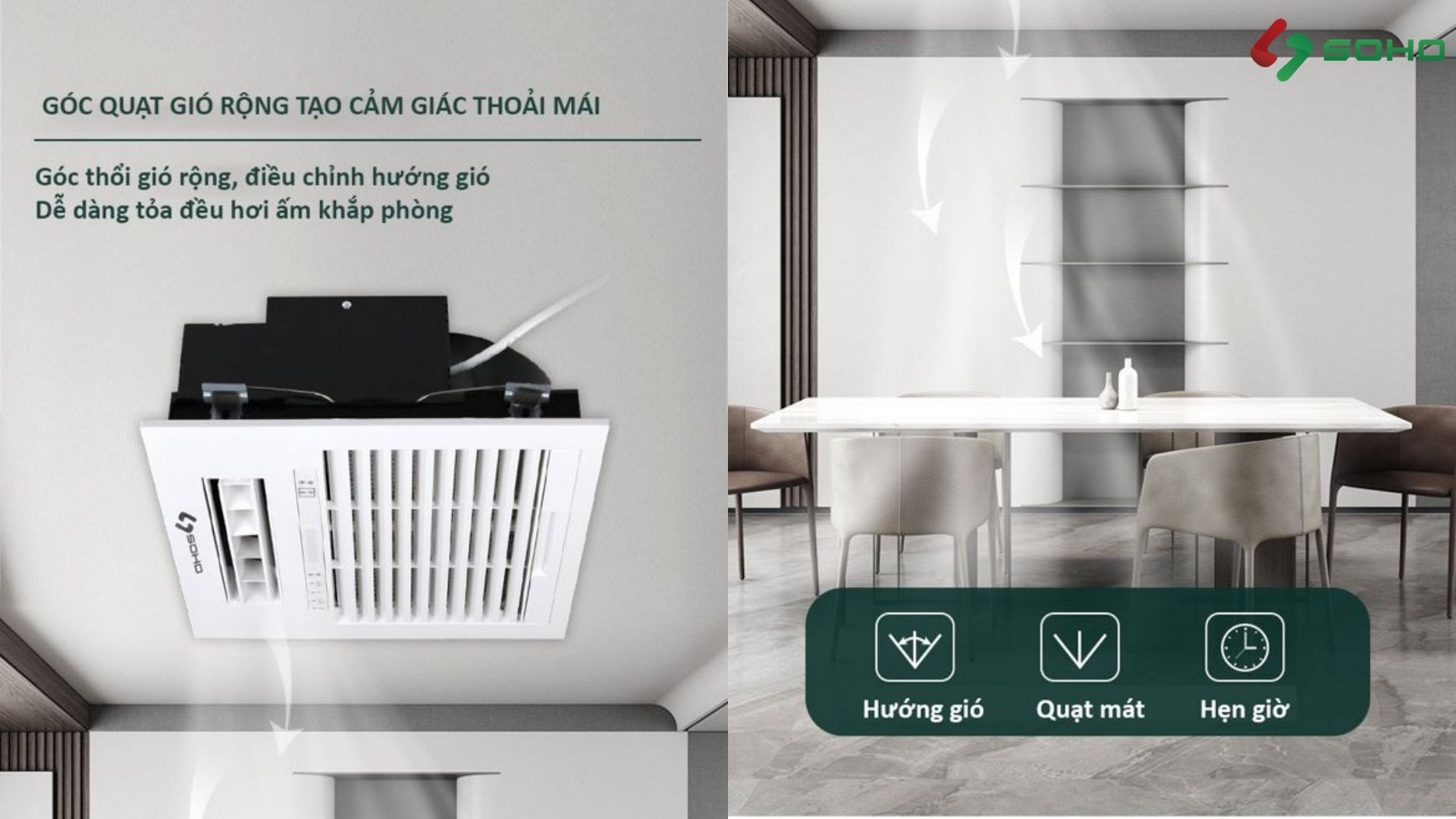 Xem thêm: Quạt sưởi âm trần SOHO Premium