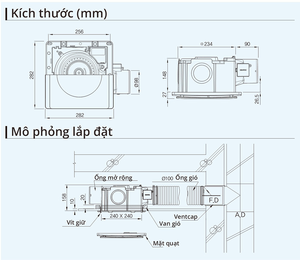 >>>Xem thêm: Quạt thông gió âm trần Himpel HV3-150