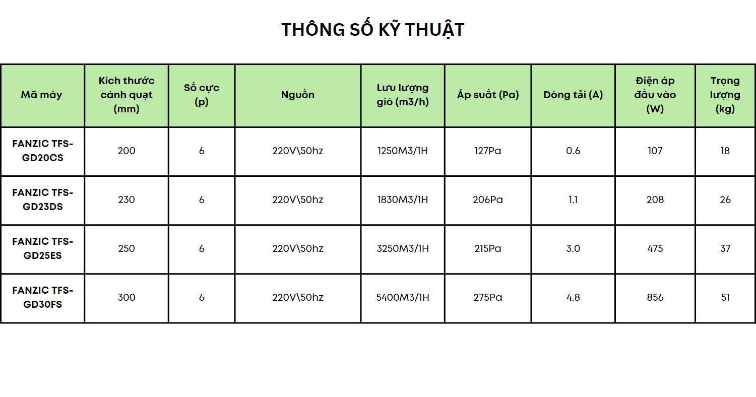 - Trục quạt li tâm, vòng bi nguyên khối, tiết kiệm điện, bền, độ ồn thấp.