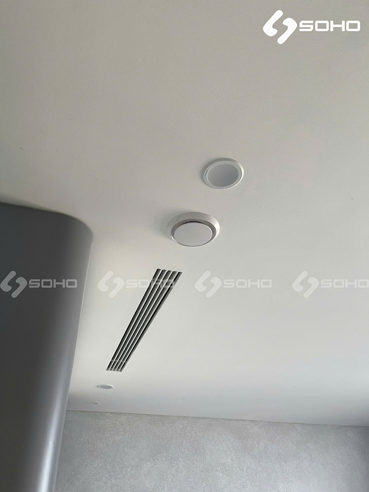 Sau khi hoàn thiện xong, hệ thống hoàn toàn ẩn mình sau lớp trần giả, đem lại không gian thẩm mỹ, sang trọng cho căn nhà nhưng vẫn giữ được hiệu suất và tính năng vượt trội, cùng độ ồn thấp. Thứ duy nhất hệ thống giữ lại là các mặt gió trên trần nhà và điều khiển của hệ thống cấp gió
