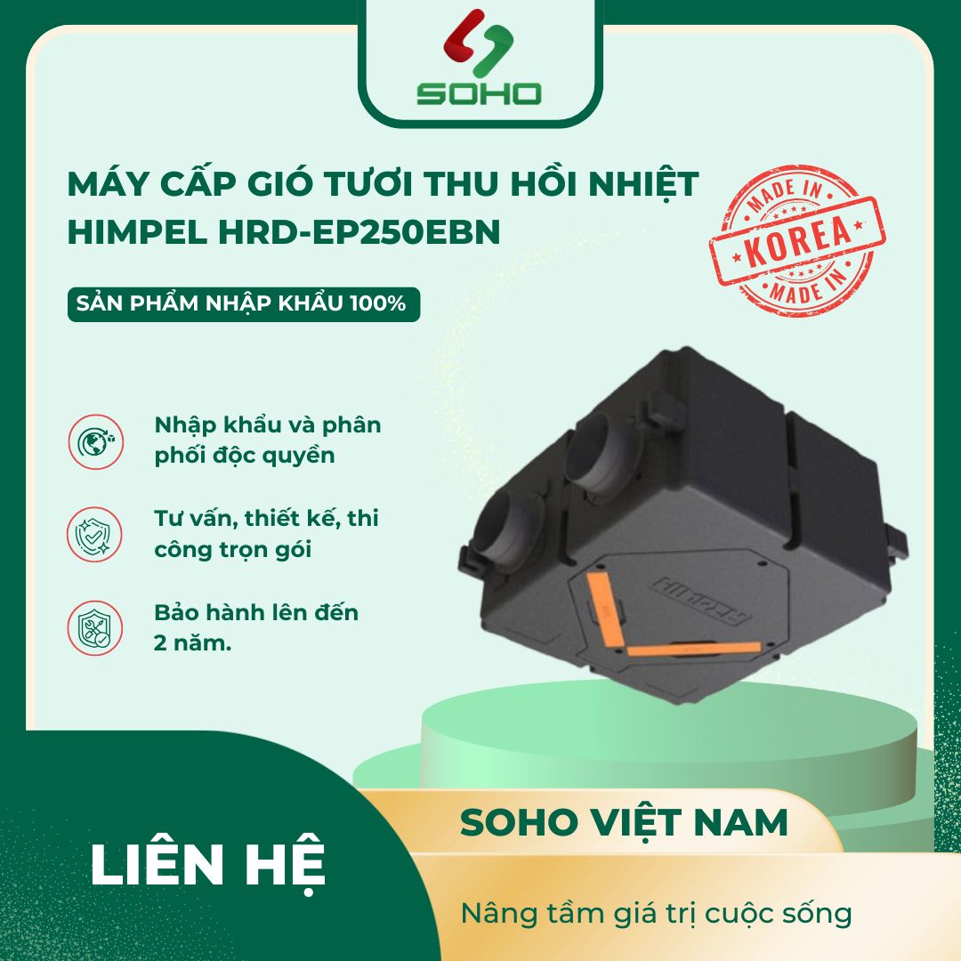 Lắp đặt máy cấp khí tươi thu hồi nhiệt Himpel không chỉ giúp cải thiện chất lượng không khí mà còn giúp tiết kiệm năng lượng, bảo vệ sức khỏe gia đình trong thời đại ô nhiễm ngày càng gia tăng. Nếu bạn đang tìm kiếm giải pháp thông gió thông minh cho không gian sống tại các dự án chung cư, nhà phố, văn phòng, HRD-EP200EBN của Himpel là lựa chọn đáng cân nhắc.