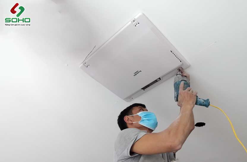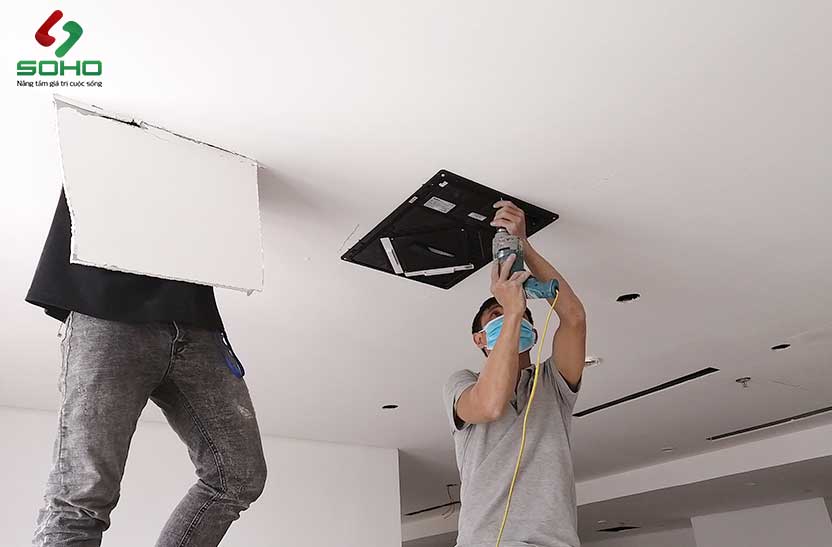 Công trình đang trong quá trình hoàn thiện và đóng thạch cao nên việc lắp đặt sẽ đơn giản và nhanh chóng hơn. Toàn bộ quá trình lắp đặt chỉ trong 1 buổi sáng.