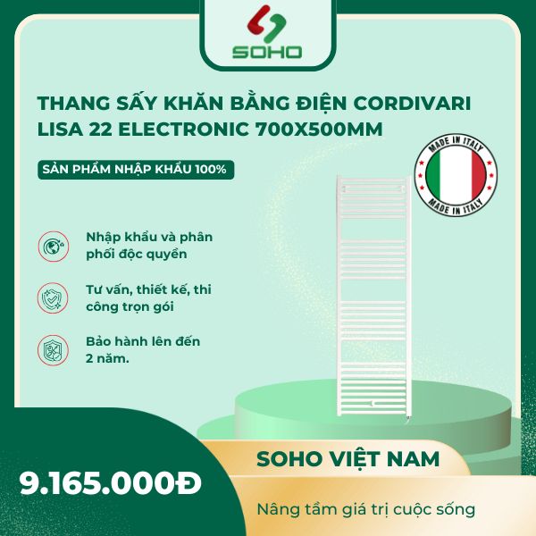 Chia sẻ nhận xét của bạn về Thang Sấy Khăn Bằng Điện Cordivari Lisa 22 Electronic 700x500